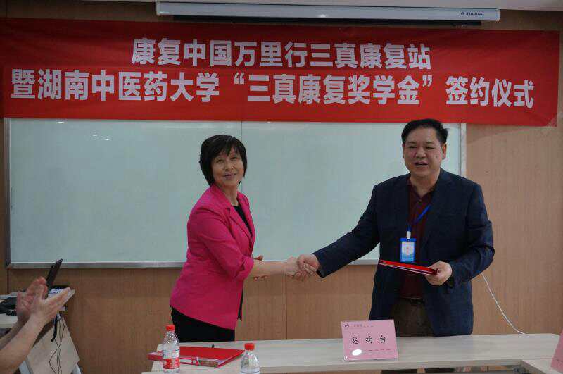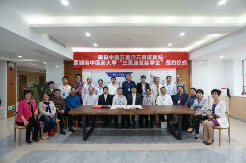 4月19日下午4:00,我省医学院校首次设立康复专业奖学金--“三真康复奖学金”的签约仪式在梅溪湖三真康复医院会议室举行,湖南中医药大学熊辉副校长,体育艺术学院党总支书记院长汪利人、副书记罗华、副院长张泓一同出席。