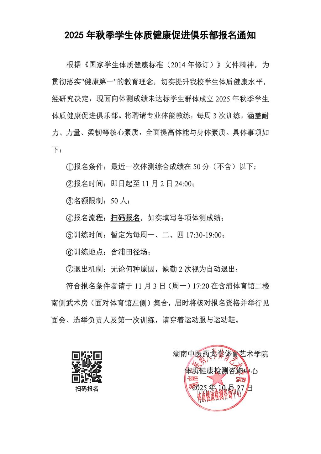 关于做好湖南中医药大学2025年秋季学生体质健康达标测试工作的通知