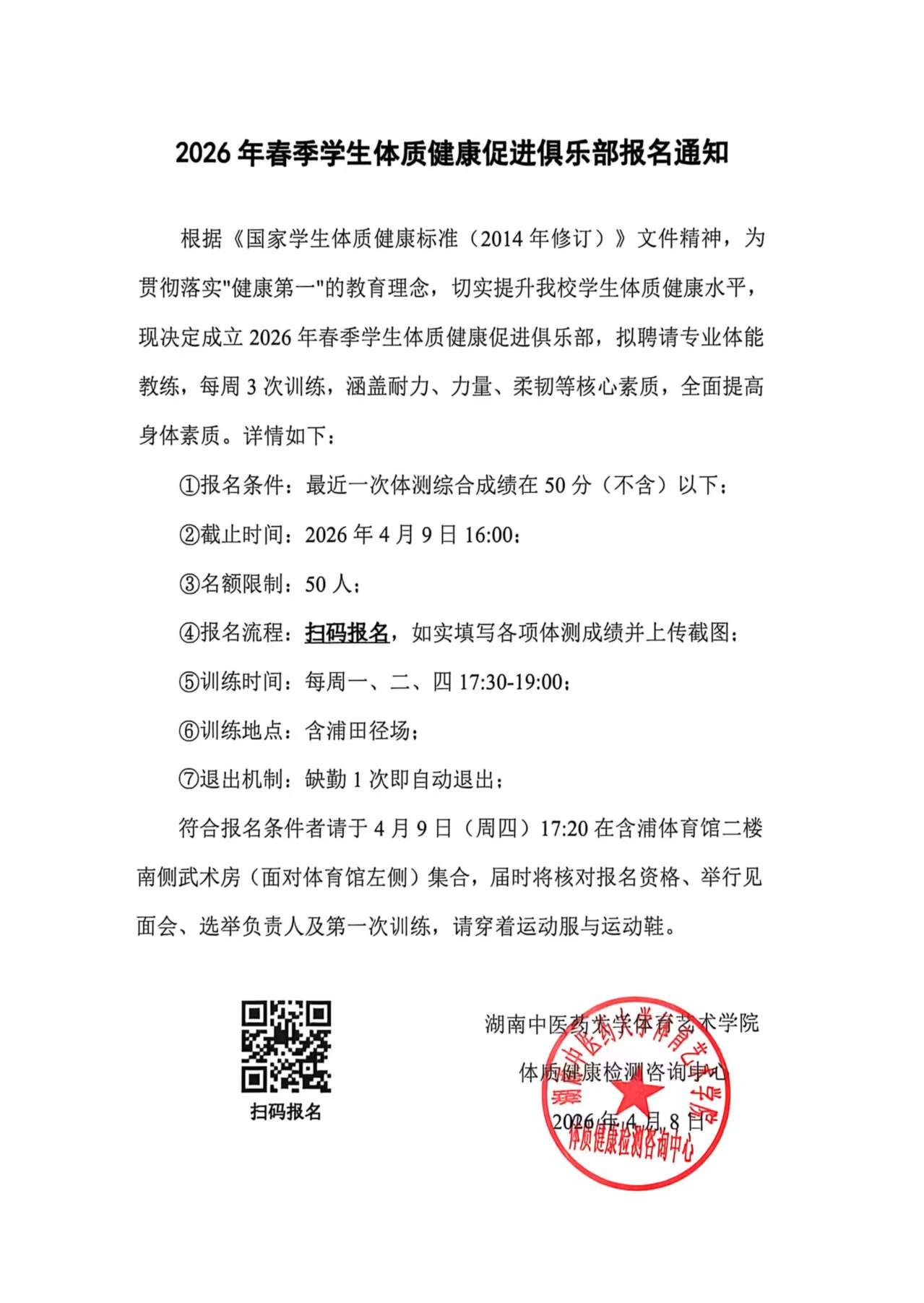 2026年春季学生体质健康促进俱乐部报名通知