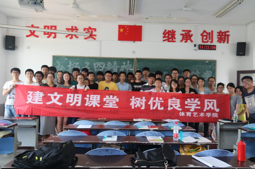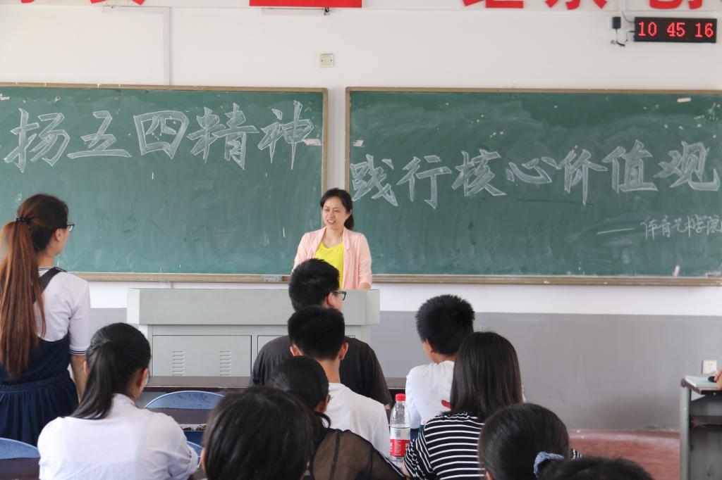 继观看了学校的“五四”表彰晚会之后,2016年5月6日上午10点40分,体育艺术学院在含浦1403教室举行了以“弘扬五四精神践行社会主义核心价值观”为主题的团日活动。参加此次活动的有体育艺术学院学生科盛凯琳老师和体育艺术学院全体学生团员,活动共分为三个部分。