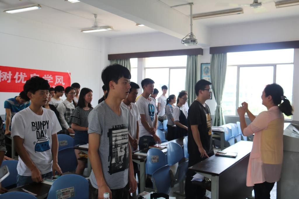 最后,是“践行”部分。光学精神还不够,更重要的是用精神。大学生要践行社会主义核心价值观,我院发出了“倡课堂文明 树优良学风”的倡议,尊师重道、度己以绳,每位在场的团员都一一上台在横幅上郑重的签名承诺。